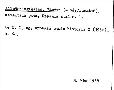 Information om Allmänningsgatan, Västra =Vårfrugatan