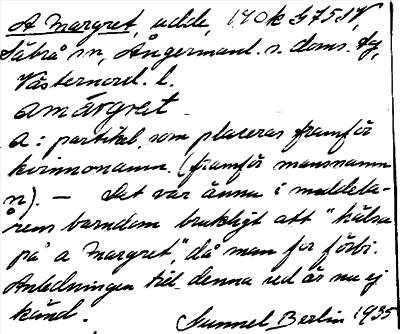 Information om ortnamnet A Margret