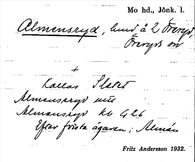 Öreryds sn, Mo hd, Jönköpings län, Småland