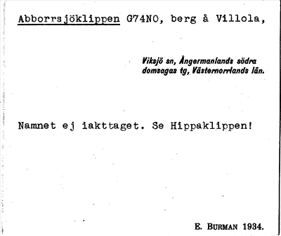 Information om ortnamnet Abborrsjöklippen