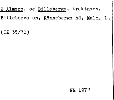 Information om arkivposten Almsro, se Billeberga