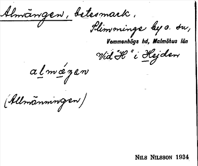 Information om ortnamnet Almängen