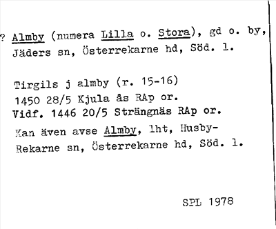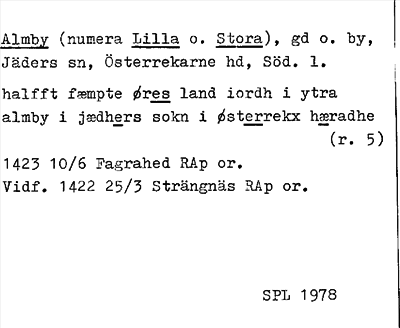 Information om ortnamnet Almby numera Lilla o. Stora