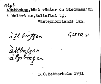 Information om ortnamnet Alpbäcken, Alptbäcken