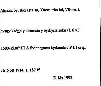 Information om ortnamnet Almsta