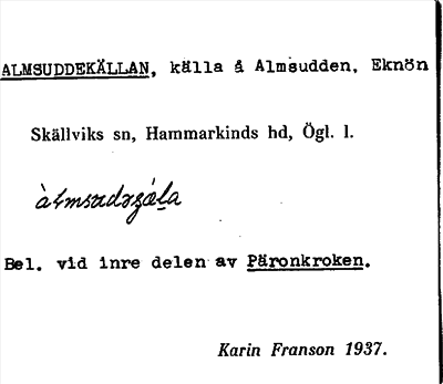 Information om ortnamnet Almsuddekällan