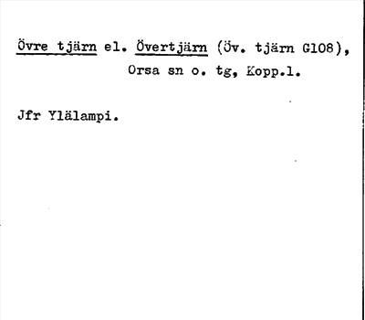 Information om ortnamnet Övre tjärn el. Övertjärn