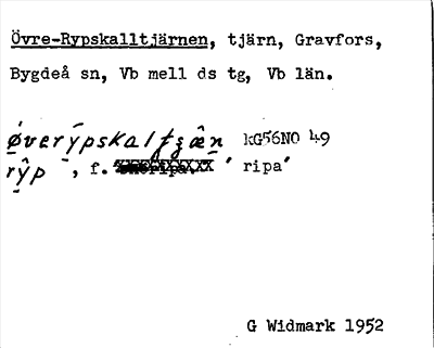 Information om ortnamnet Övre-Rypskalltjärnen