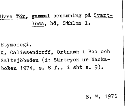 Information om ortnamnet Övre Tör numera Svartlösa