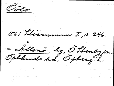 Information om arkivposten Öölo Information om Öölo Namn Öölo Lokalisering Sverige Informationstyp Belägg Id för arkivposten 3935475