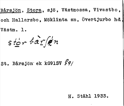 Information om ortnamnet Bårsjön, Stora