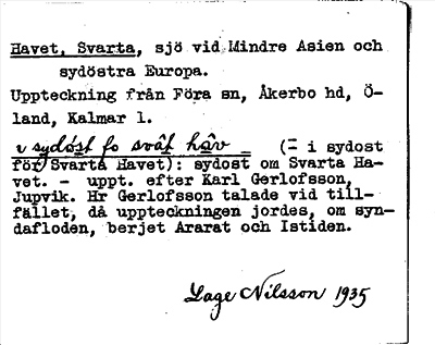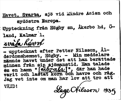 Information om ortnamnet Havet, Svarta