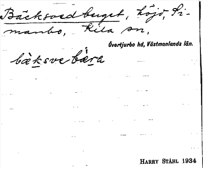 Information om ortnamnet Bäcksvedberget