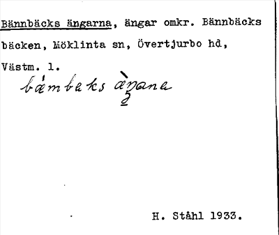 Information om ortnamnet Bännbäcks ängarna