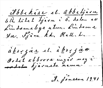 Information om ortnamnet Abbekärr el. Abbetjärn