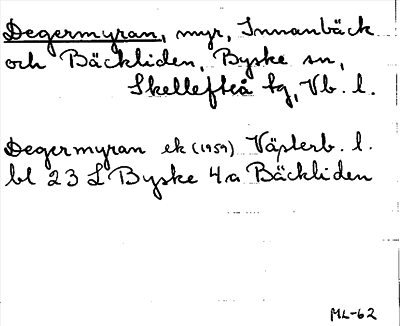 Information om ortnamnet Degermyran