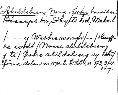 Information om ortnamnet Abildebierg, Norre o. Østre