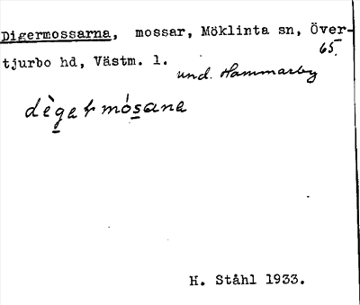Information om ortnamnet Digermossarna