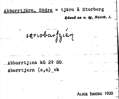 Information om ortnamnet Abborrtjärn, Södra