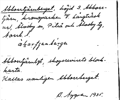 Information om ortnamnet Abborrtjärnberget