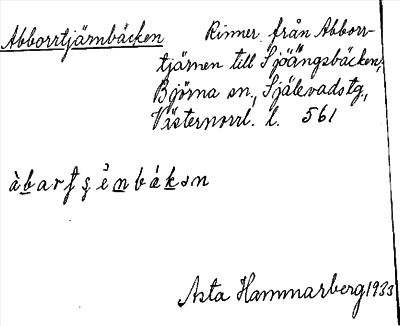 Information om ortnamnet Abborrtjärnbäcken