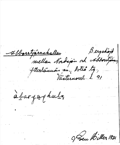 Information om ortnamnet Abborrtjärnskullen