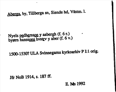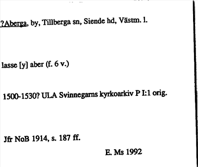 Information om ortnamnet Aberga