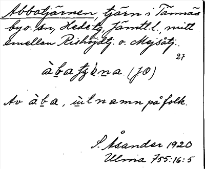 Information om ortnamnet Abbatjärnen