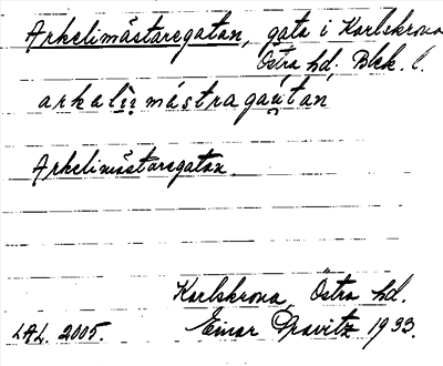 Information om ortnamnet Arkelimästaregatan