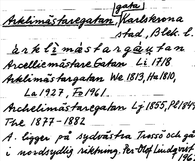 Information om ortnamnet Arklimästaregatan