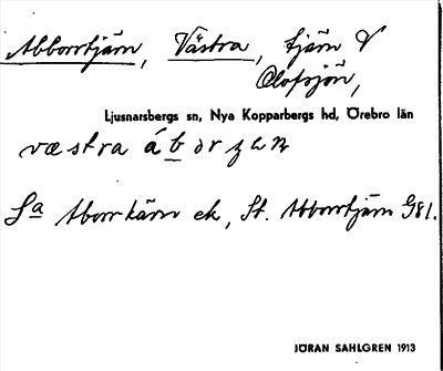 Information om ortnamnet Abborrtjärn, Västra