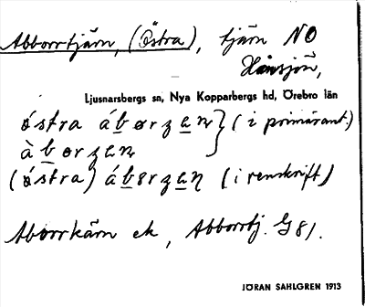 Information om ortnamnet Abborrtjärn, Östra