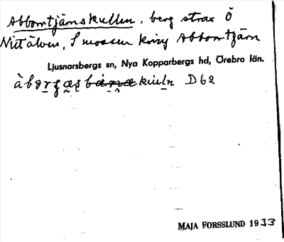Information om ortnamnet Abborrtjärnskullen