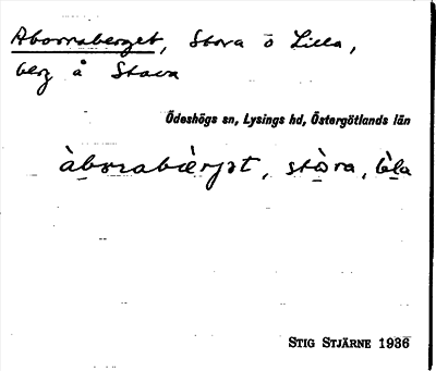Information om ortnamnet Aborraberget, Stora o. Lilla
