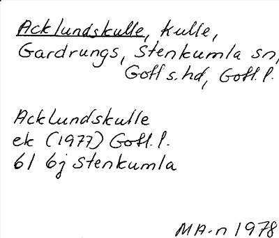 Information om ortnamnet Acklundskulle