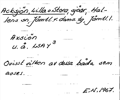 Information om ortnamnet Acksjön, Lilla o. Stora