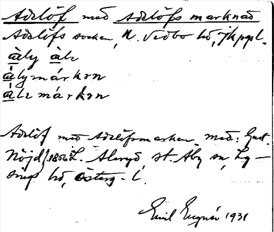 Information om ortnamnet Adelöf med Adelöfs marknad