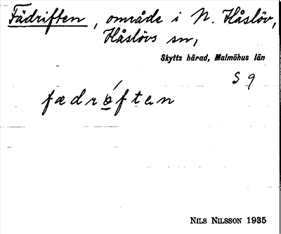 Information om ortnamnet Fädriften