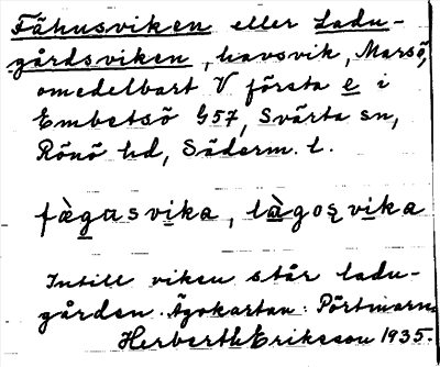 Information om ortnamnet Fähusviken eller Ladugårdsviken