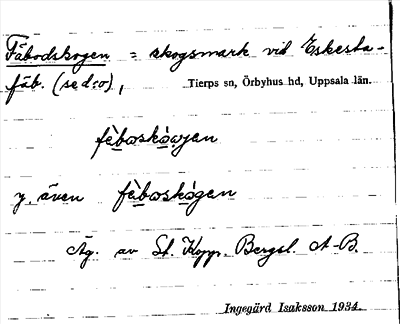 Information om arkivposten Fäbodskogen