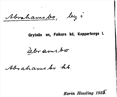 Information om ortnamnet Abrahams bo