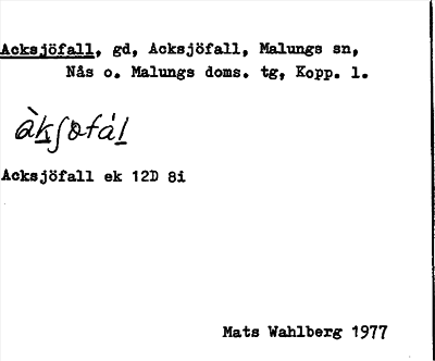 Information om ortnamnet Acksjöfall