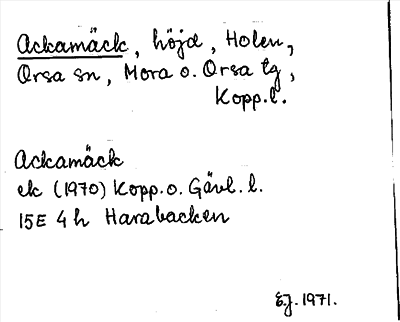 Information om ortnamnet Ackamäck