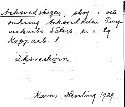 Information om ortnamnet Acksvedskogen