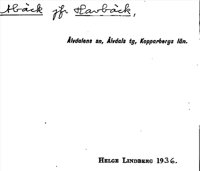 Information om Abäck jfr Havbäck