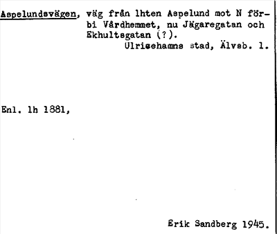 Bild på arkivkortet för arkivposten Aspelundsvägen