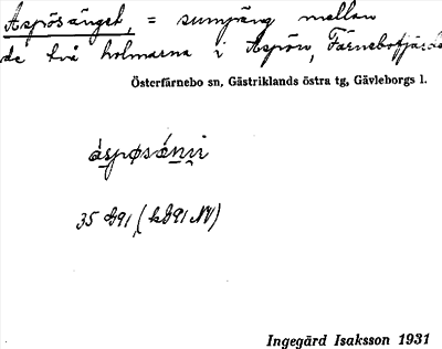 Information om ortnamnet Aspösänget