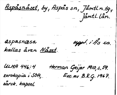 Information om arkivposten (Aspås)näset