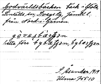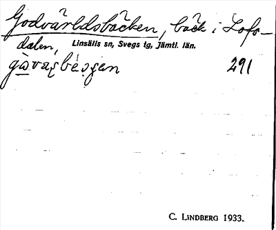 Bild på arkivkortet för arkivposten Godvärldsbäcken
