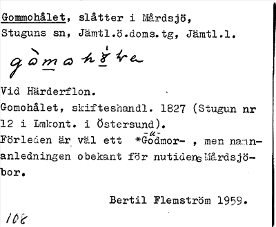 Information om ortnamnet Gommohålet